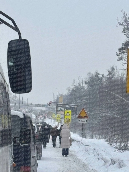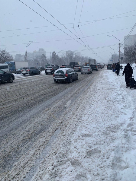 Транспортні засоби застрягли на Житомирській та Варшавській магістралях від Бучі до Мощуна, а також при в’їзді до міста з Одеської траси.