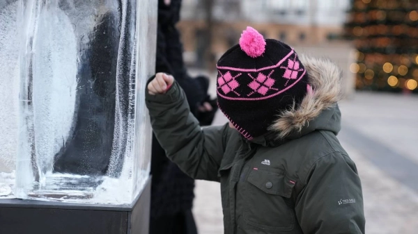 На Софійській площі в Києві розміщено інтерактивну інсталяцію «Серце в крижаній глибі», яка функціонуватиме до 6 січня 2026 року. Вона уособлює важливість душевної підтримки та людського зігрівання у час війни, даючи змогу гостям розтоплювати кригу дотиками.