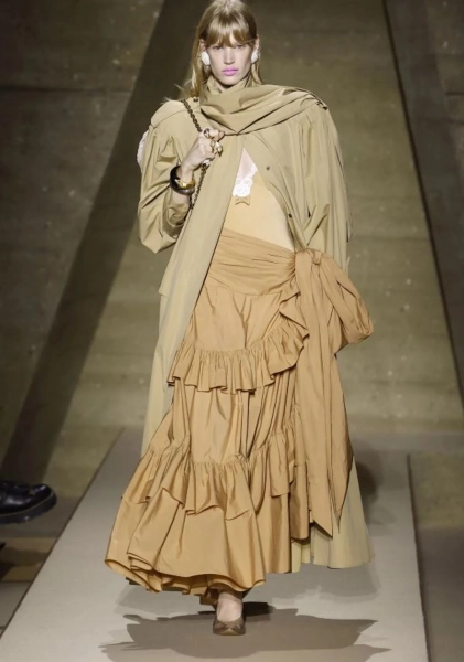 Провідний тренд, що вривається в 2026 рік – розкіш та експресивність. Оригінальні фасони, які вражають своєю своєрідністю, захоплять майбутній сезон. Найяскравішим вираженням тренду стануть довгі та об’ємні спідниці. Важливо, щоб об’ємність була акцентована саме внизу, а верх мав бути мінімалістичним та стриманим.