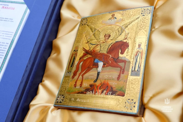 Розвідувальне управління України передало Православній Церкві України історичну ікону, де Архангел Михаїл постає в образі воїна на палаючому коні. Урочисте вручення реліквії відбулося за участі очільника ГУР МО України генерал-лейтенанта Кирила Буданова та очільника Служби військового капеланства ГУР підполковника Костянтина Холодова. Про це ГУР інформує у своєму Телеграм-каналі, повідомляє УНН.