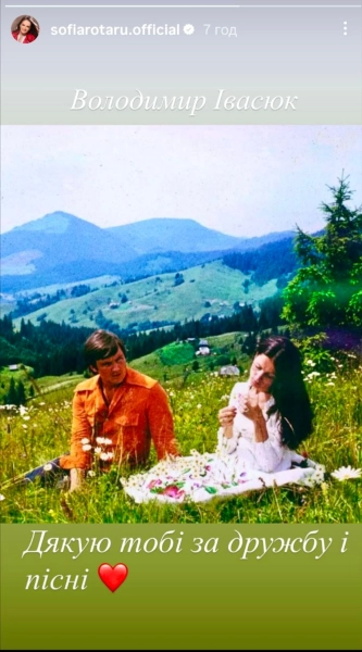 Софія Ротару відзначила пам’ять Володимира Івасюка, продемонструвавши старе фото з ним. Композитор є творцем пісні “Червона рута”, яка подарувала популярність виконавиці.