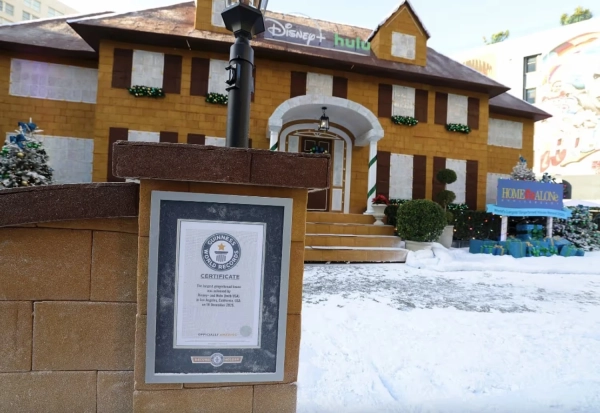 У Лос-Анджелесі постала понад семиметрова копія з імбирного печива будинку з кінострічки “Один вдома”, яка потрапила до Книги рекордів Гіннеса. З’їстівнаінсталяція, що простяглася на 17,5 м у довжину, 12,5 м завширшки та 7,7 м у висоту, була створена Disney+ та Hulu на честь 35-річного ювілею кінофільму.
