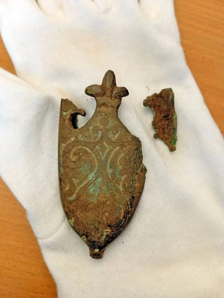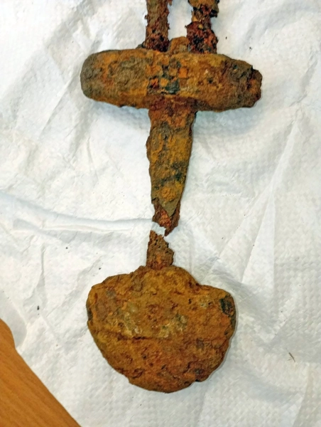 На клинку збереглися бронзовий наконечник із срібним оздобленням, а також рукоятка та гарда з візерунком. Незважаючи на пошкодження, меч та інші виявлені об’єкти стануть частиною музейної колекції.