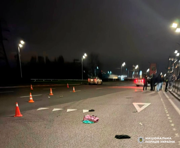 Дорожня аварія трапилася минулої п’ятниці близько 21:15 години в Оболонському районі столиці. 23-річний водій електромобіля, рухаючись при з’їзді з мосту з боку вулиці Богатирської у напрямку Оболонського проспекту, вчинив наїзд на неповнолітню дівчину, яка переходила дорогу по нерегульованому пішохідному переходу. Від отриманих пошкоджень потерпіла померла на місці події