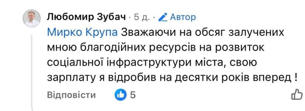 У коментарях під публікаціями Зубач навіть дозволив собі заявити, що “заробив свою зарплату на кілька років вперед” — відповідь, яка викликала закономірне обурення користувачів.