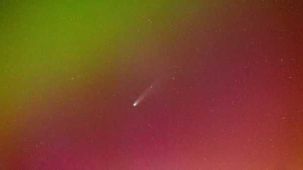 Надяскрава комета Леммона пролітає крізь полярні сяйва над Шотландією під час несподіваної сонячної бурі