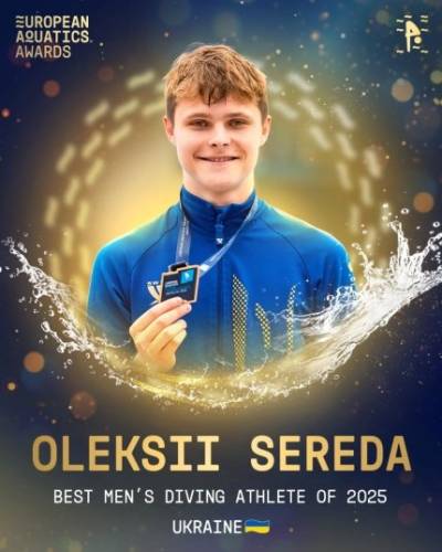 Український атлет зі стрибків у воду Олексій Середа завоював звання кращого спортсмена Європи у 2025 році за оцінкою European Aquatics.