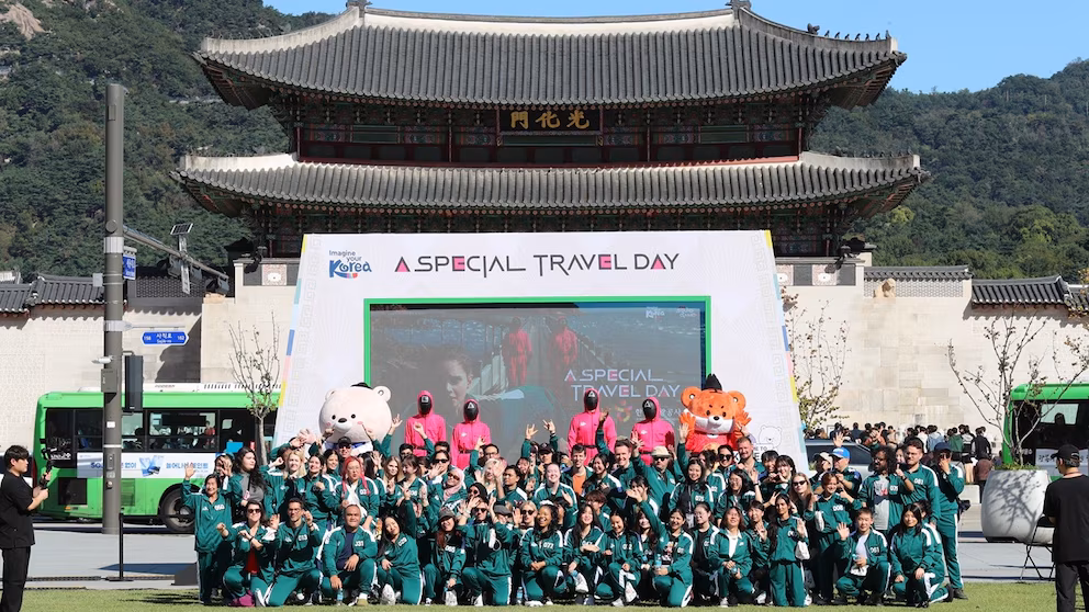 Іноземні громадяни з усього світу зібралися на площі Кванхвамун у четвер, щоб взяти участь у справжній версії «Гри в кальмарів» – тільки цього разу їхні життя не були під загрозою. Корейська туристична організація
