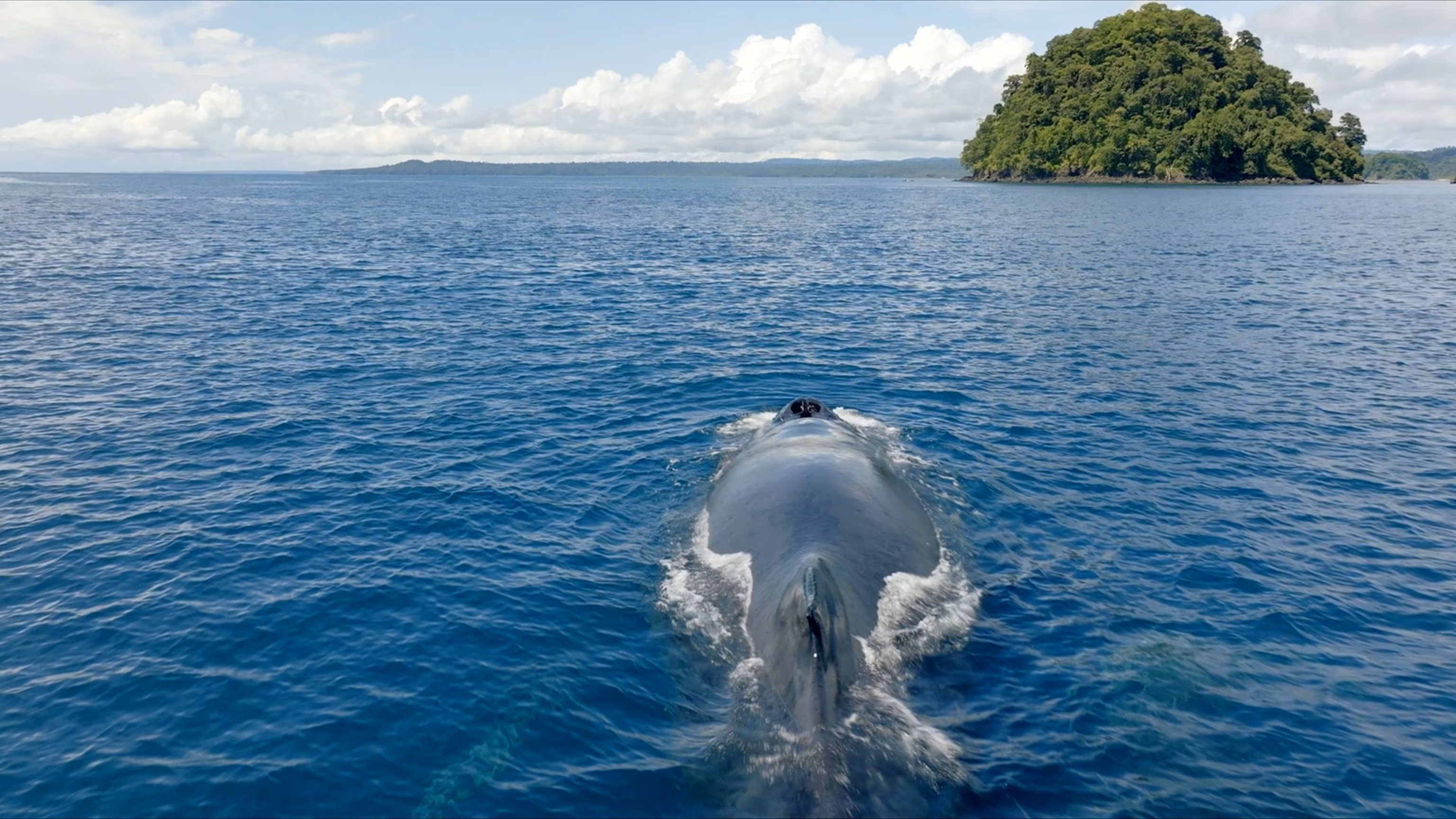 Кит піднімається на поверхню блакитної води Національного парку Койба в Панамі, щоб ковтнути повітря. ABC News