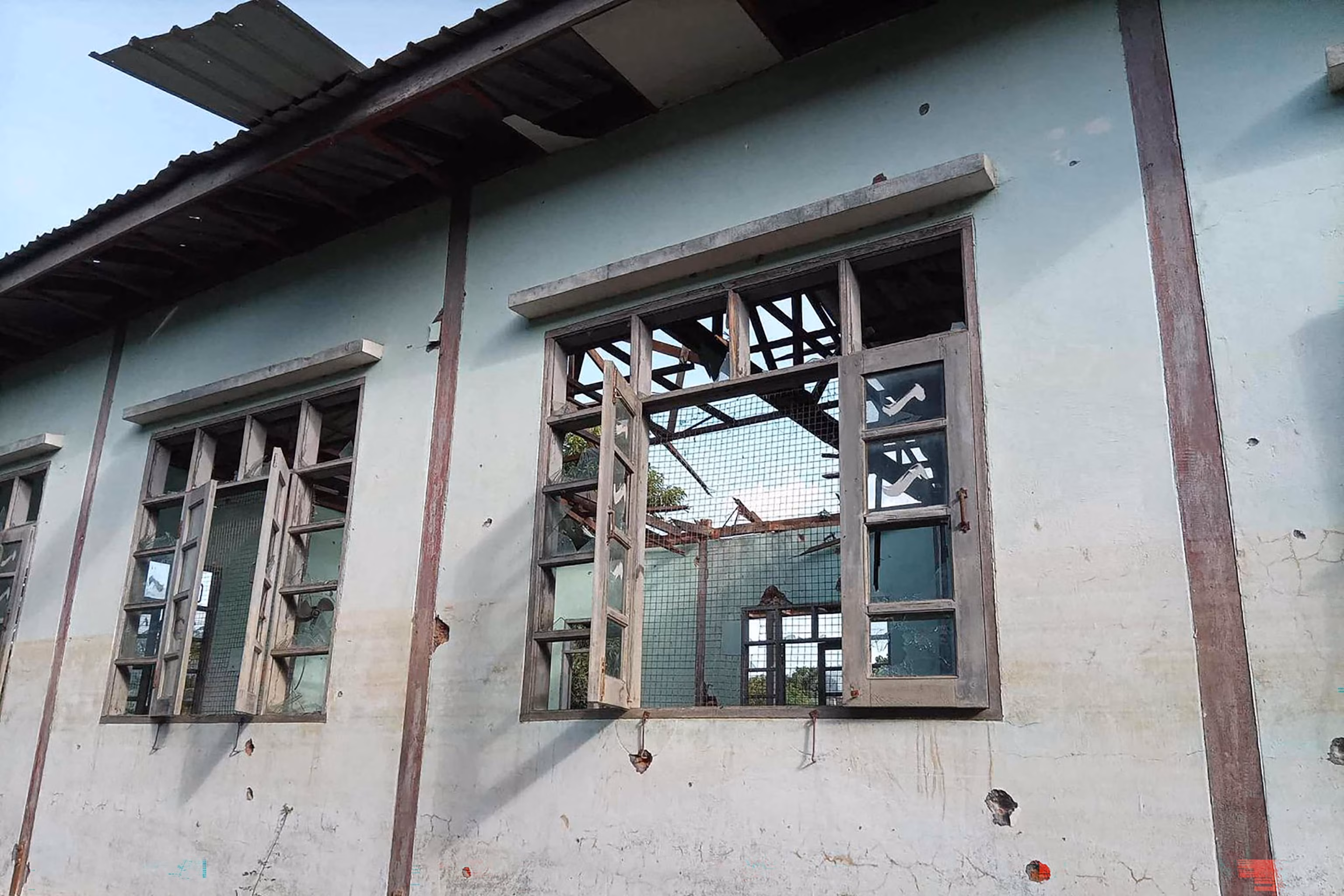 Це UGC-фотографія, надана користувачем Facebook Yebaw Hlyat Cee 7 жовтня 2025 року та отримана 8 жовтня, показує пошкодження будівлі поруч із місцем військового удару по протесту в центральній частині містечка Чаунг У М'янми. Yebaw Hlyat Cee/Facebook via AFP via Getty Images