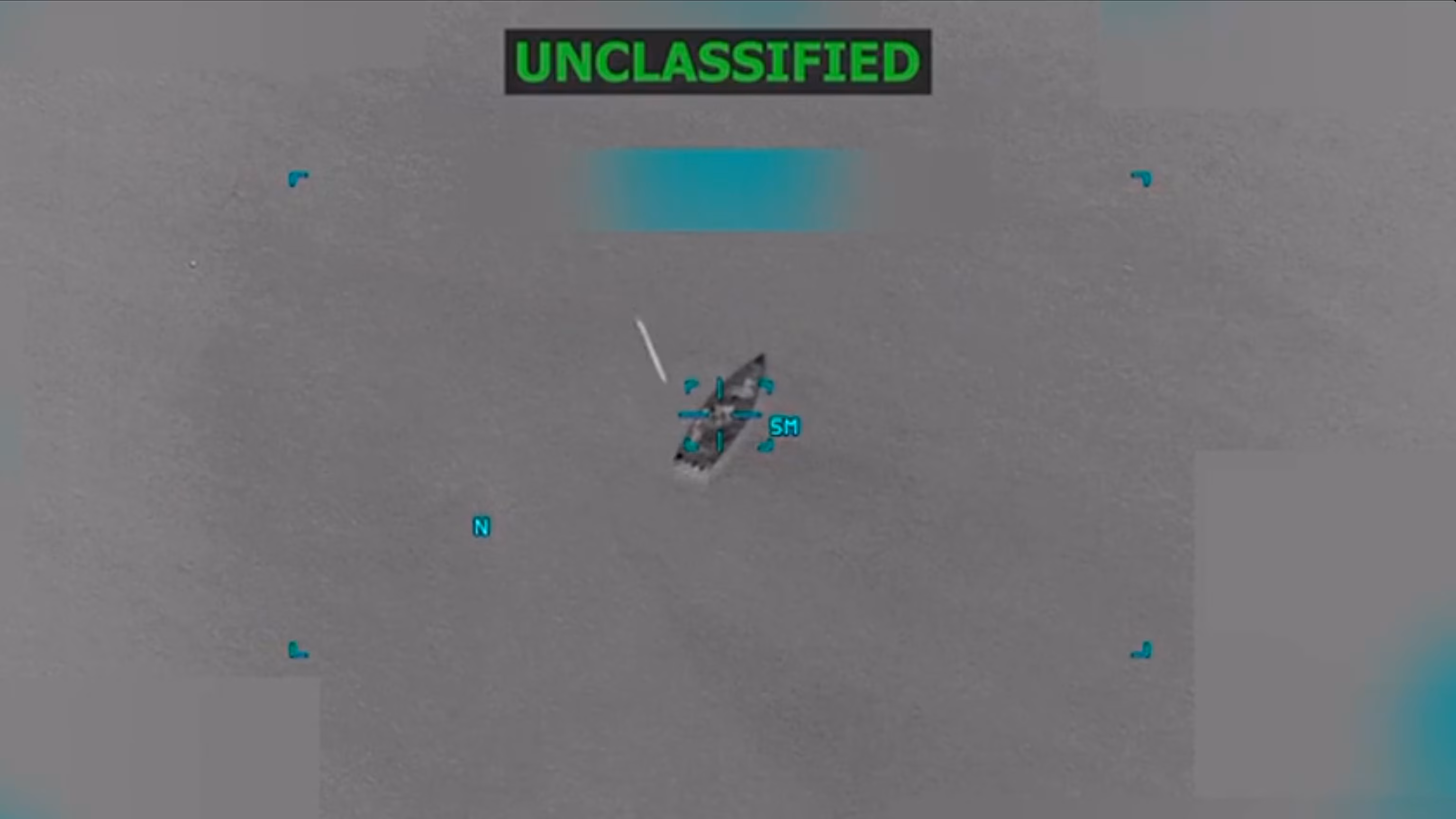 І Трамп, і міністр оборони Піт Хегсет опублікували відео нападу, на якому видно, що, ймовірно, швидкісний катер вразив раптовий вибух. Трамп заявив, що судно було пов'язане з неназваною «визначеною терористичною організацією, яка займається наркоторгівлею».